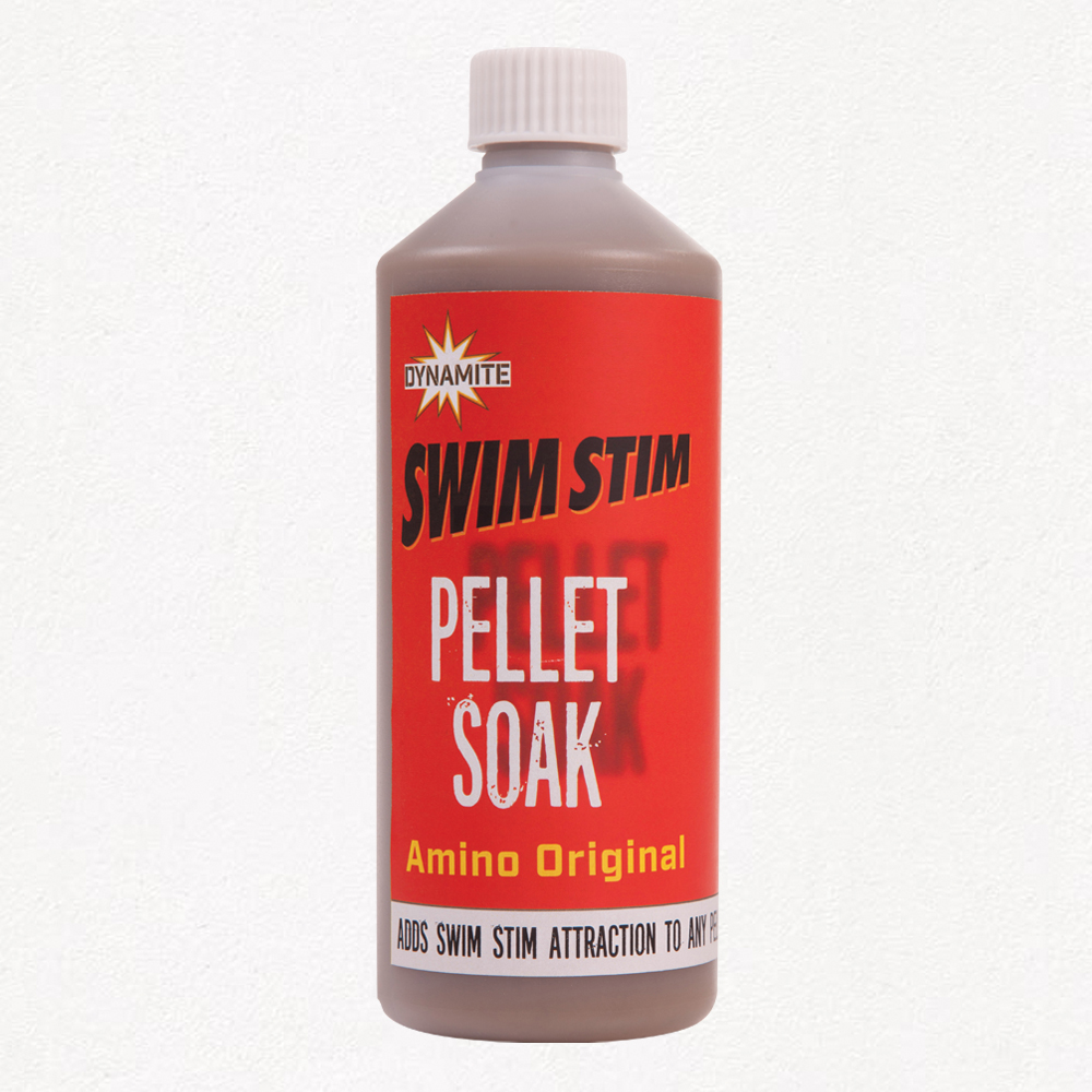 Dynamite Swim Stim Pellet Soak – Amino Original (500ml) boosts your pellets with a potent amino acid formula. This soak enhances bait attractiveness and fish attraction, suitable for various fishing conditions. Comes in a 500ml bottle with an easy-to-use design.